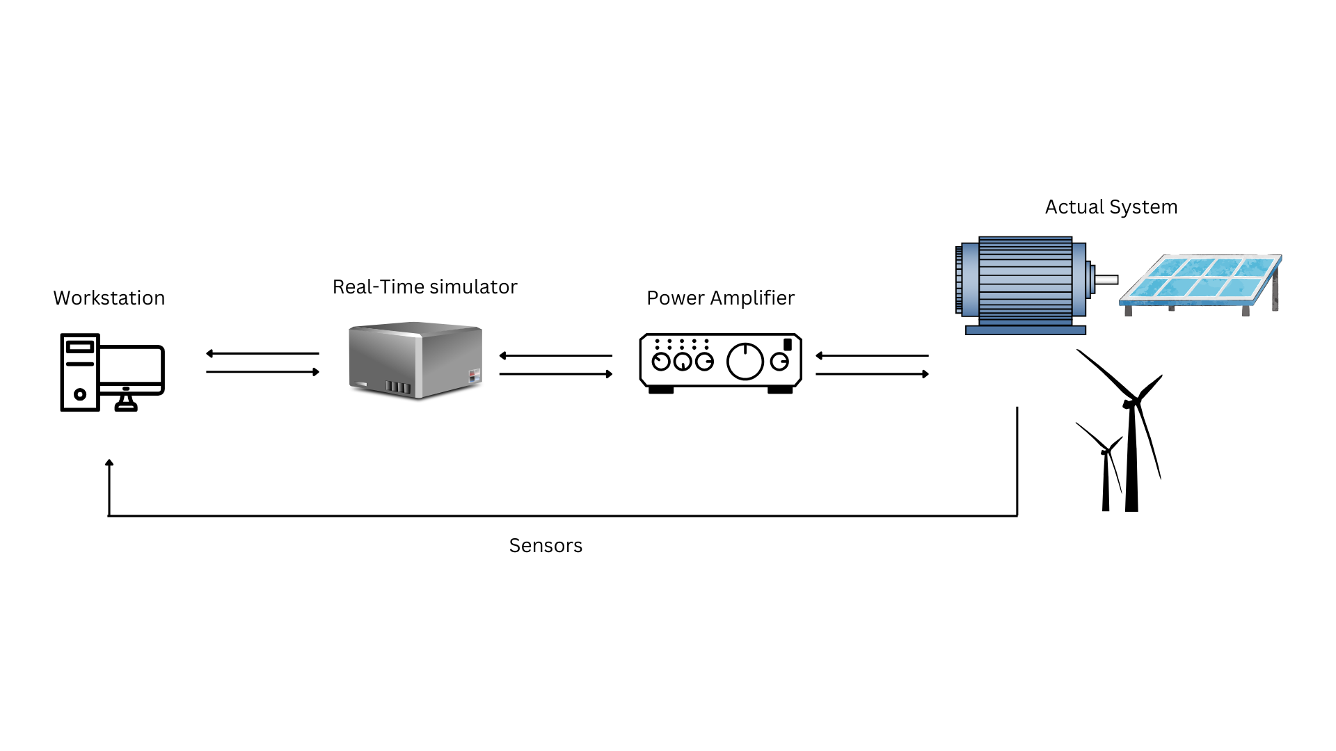 The results demonstrate that the inverter system maintains high stability across frequency variations, validating the effectiveness of the V/f control algorithm. C-HIL testing confirms a fast and precise control response, while P-HIL testing verifies the inverter’s power performance under real-world conditions. The CP-HIL approach, integrating both control and power validation, provides the most comprehensive assessment of the inverter system. This study highlights that HIL-based testing, particularly CP-HIL, offers a highly accurate and efficient validation framework for developing more reliable and optimized three-phase inverter systems.