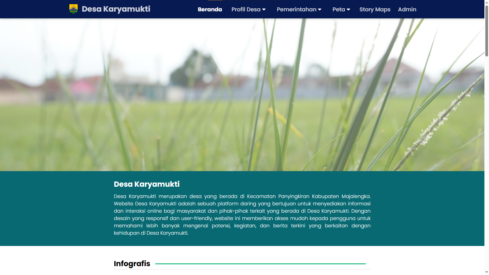 This project is a website dedicated to introducing the village of Karyamukti. The website provides comprehensive information about the village, including its vision and mission, historical background, and geographical and geological conditions. Additionally, it features details about the village government and local institutions.